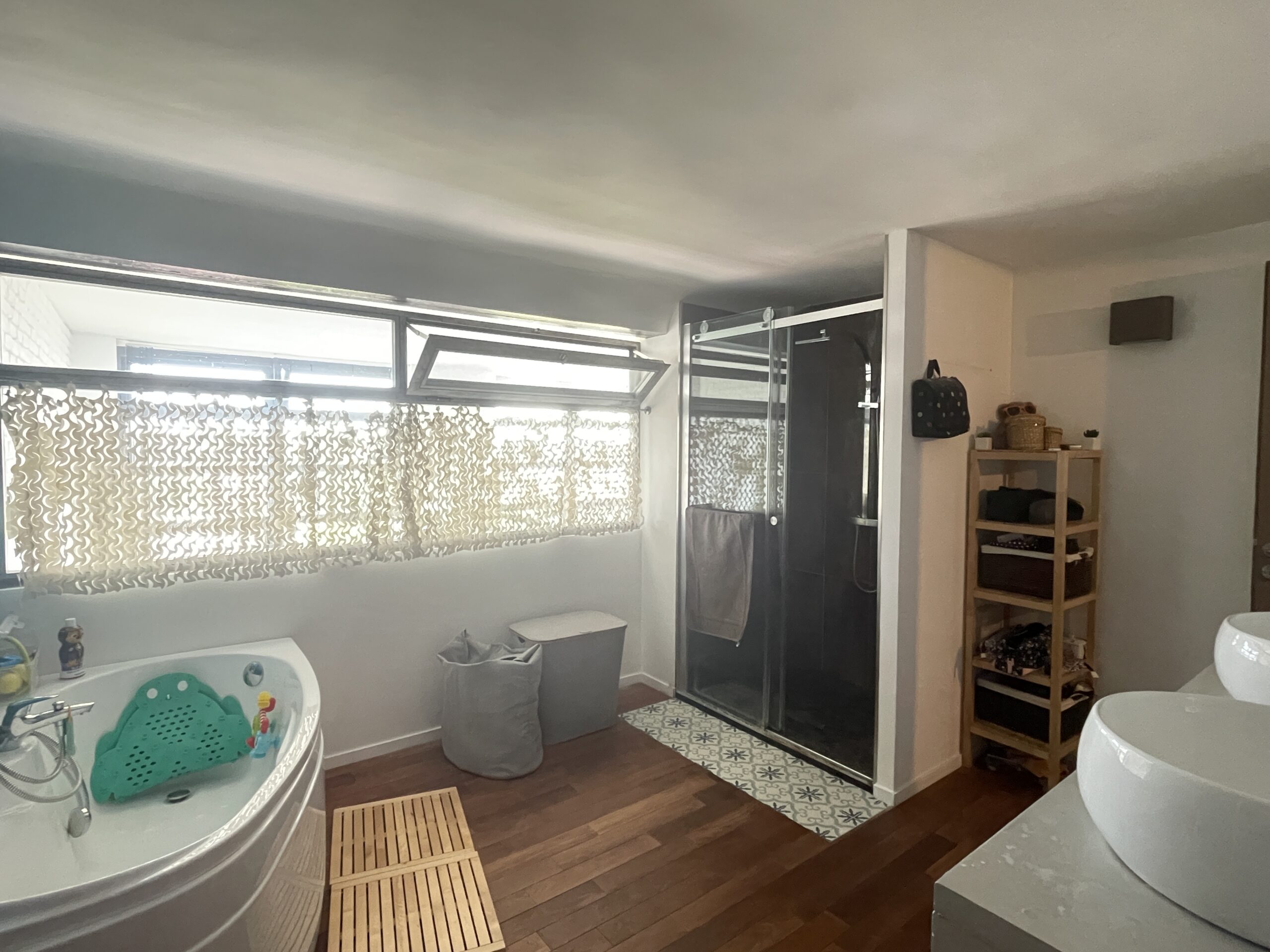 Le tout est sublimé par une belle hauteur sous plafond et de larges baies vitrées équipées de moustiquaires et de stores sur-mesure.